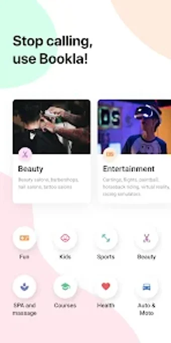 Bookla ist eine praktische App zur Buchung von Terminen bei den beliebtesten Dienstleistern in Ihrer Nähe. Die Dienstleister, die Sie in der App finden können, sind Haar-, Schönheits-, Fitness-, Wellness-, Sport-, Auto- und Fahrraddienstleistungen sowie viele andere Kategorien.